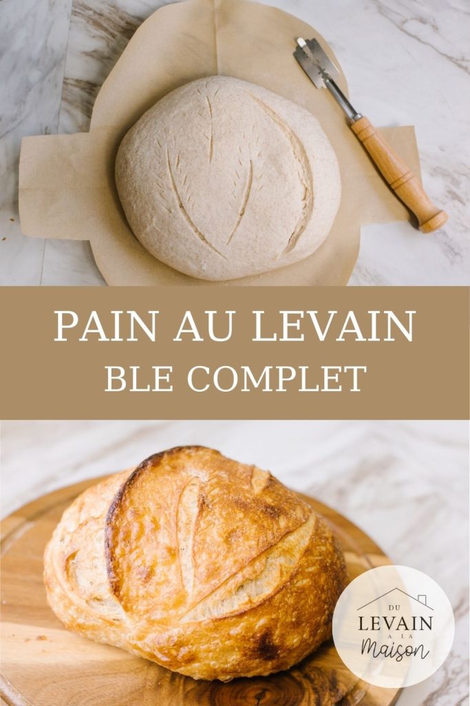 Je vous explique en détail ma recette de pain au levain, en utilisant de la farine de pain et de la farine de blé complet. On obtient une jolie miche de pain croustillante. Je vous invite à lire, au moins une fois, le guide complet pour réaliser son pain au levain avant de vous lancer dans cette recette.